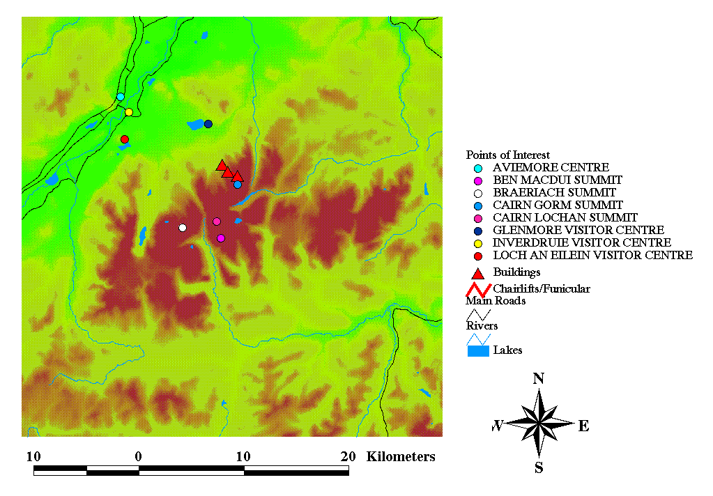 Other practical examples in the literature assessing the role of GIS to determine visual quality of a location, notably Miller, Morrice, Horne & Aspinall (1994), Miller & Law (1997) and Miller, Brooker & Law (1998) who analysed scenery in the Cairngorms in Scotland. Miller Et al. (1994) surmises that "…in the same manner that locations may be classified by altitude, land cover, or land use, they may also be classified in terms of the amount of land visible from them." To assess 'scenic potential' they calculated the number of viewpoints that each terrain location can see. In general they found that the highly visible land is along the Spey Valley floor and the more mountainous regions have lower values because of their relatively enclosed nature, although the mountain summit of Cairngorm was a notable exception. This assessment allows the delimiting of areas that are the most sensitive to visual impact.